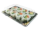 katgely - Lid 661x465x118 inches base 650x453x083 inches Made in the usa and bpa free 8 small sushi trays with lids pack of 50 tray and lid only sushi not included Sushi trays feature authentic japanese laminations which enhance the foods appetite appeal Sushi trays have snaplocking lids to preserve food freshness and prohibit food odor contamination