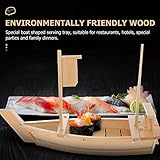YARNOW - The classic and attractive boat design you can make every meal to a special oneBamboo sushi plate Ideal for appetizers cocktail parties parties picnics bbqs weddings and more Snack dishes Boat shaped design a great way to impress your dinner guests as you serve your sushi creations or anything else you desire Sushi display plates Perfect size for any table or counter at any restaurant buffet catering events or any eating venue Sushi boat plate wooden sushi serving tray restaurant home boat plate