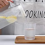 WUWEOT - The capacity is of class carafe pitcher is 1000 ml33 oz 35inch top opening wide enough to drop in your ice cubes and fruit slices 102inch tall and 35inch wide pitcher fit comfortably in your refrigerator door as well as most importantly sealed well This water carafe is widely used for water iced tea hot tea fruit infused water homemade beverages cold brew coffee sangria milk wine cocktailetc It is a beautiful gift for women and men Our glass carafe has a dripfree spill proof bottle pourer opens automatically when you pour This means that you avoid the fridge aftertaste or ice cubes splashing down into the tumbler