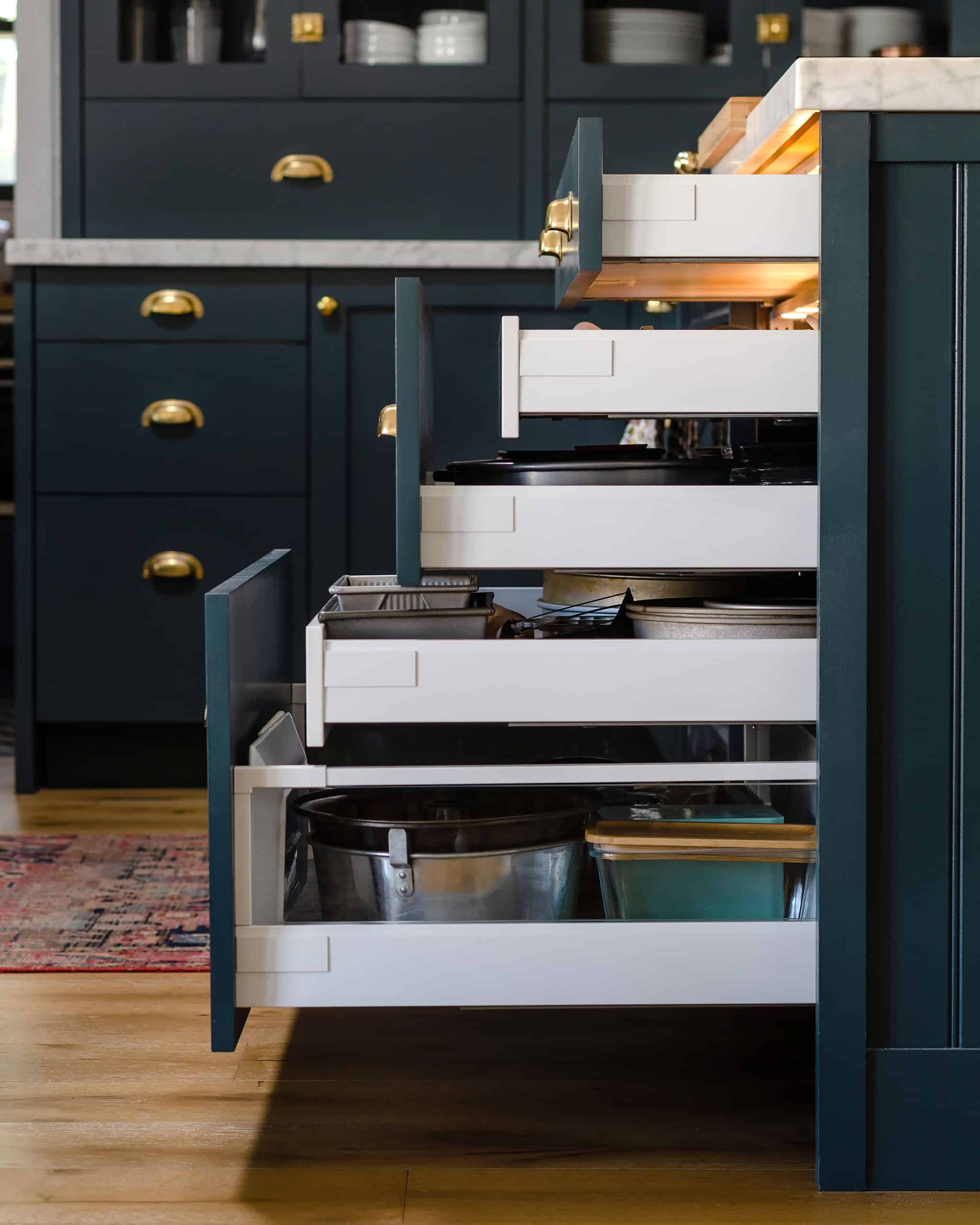 Organizationally, I would say Marie Kondo is a huge influence, as well as just going into IKEA and looking in all the drawers of their display kitchens. That was a big help!