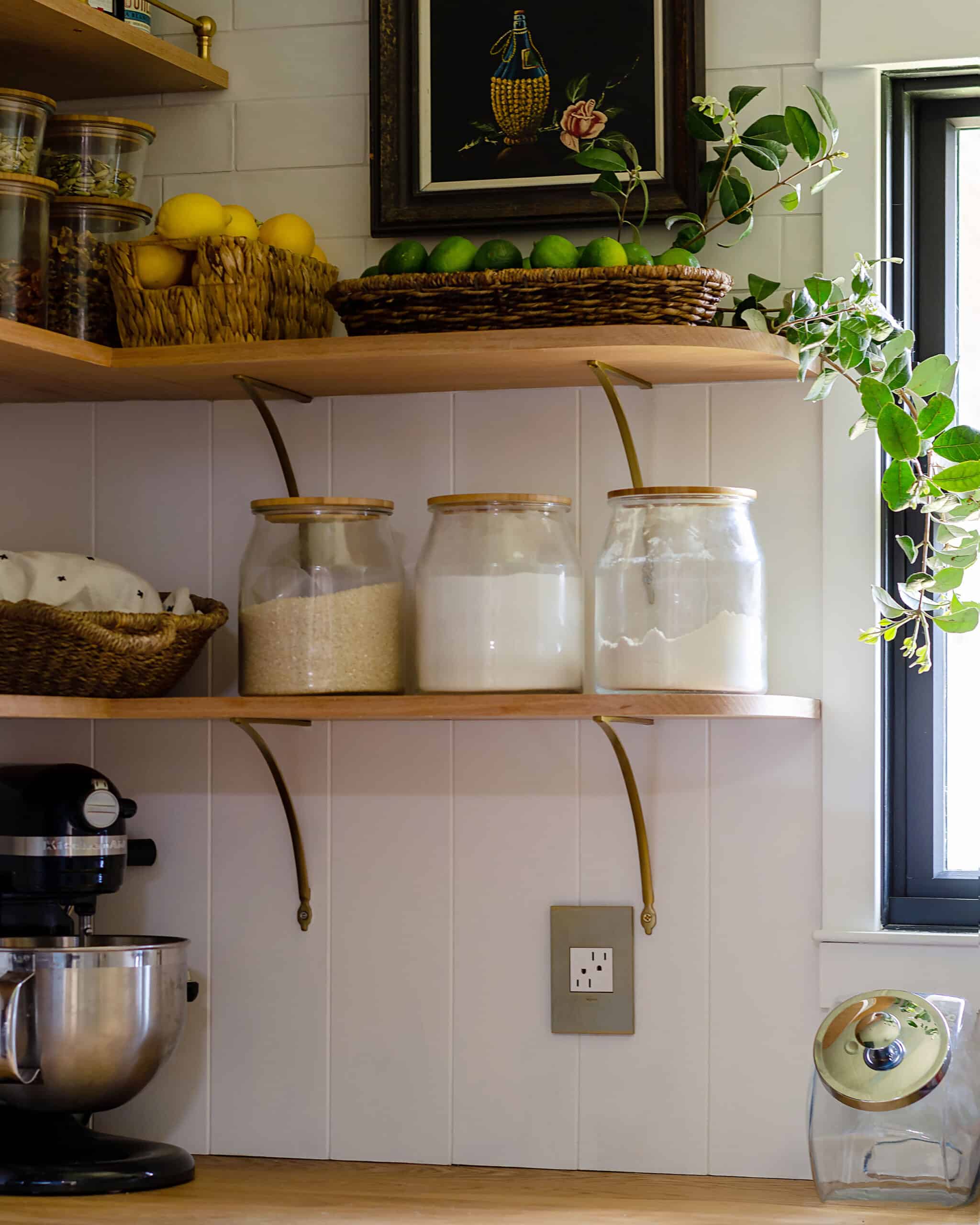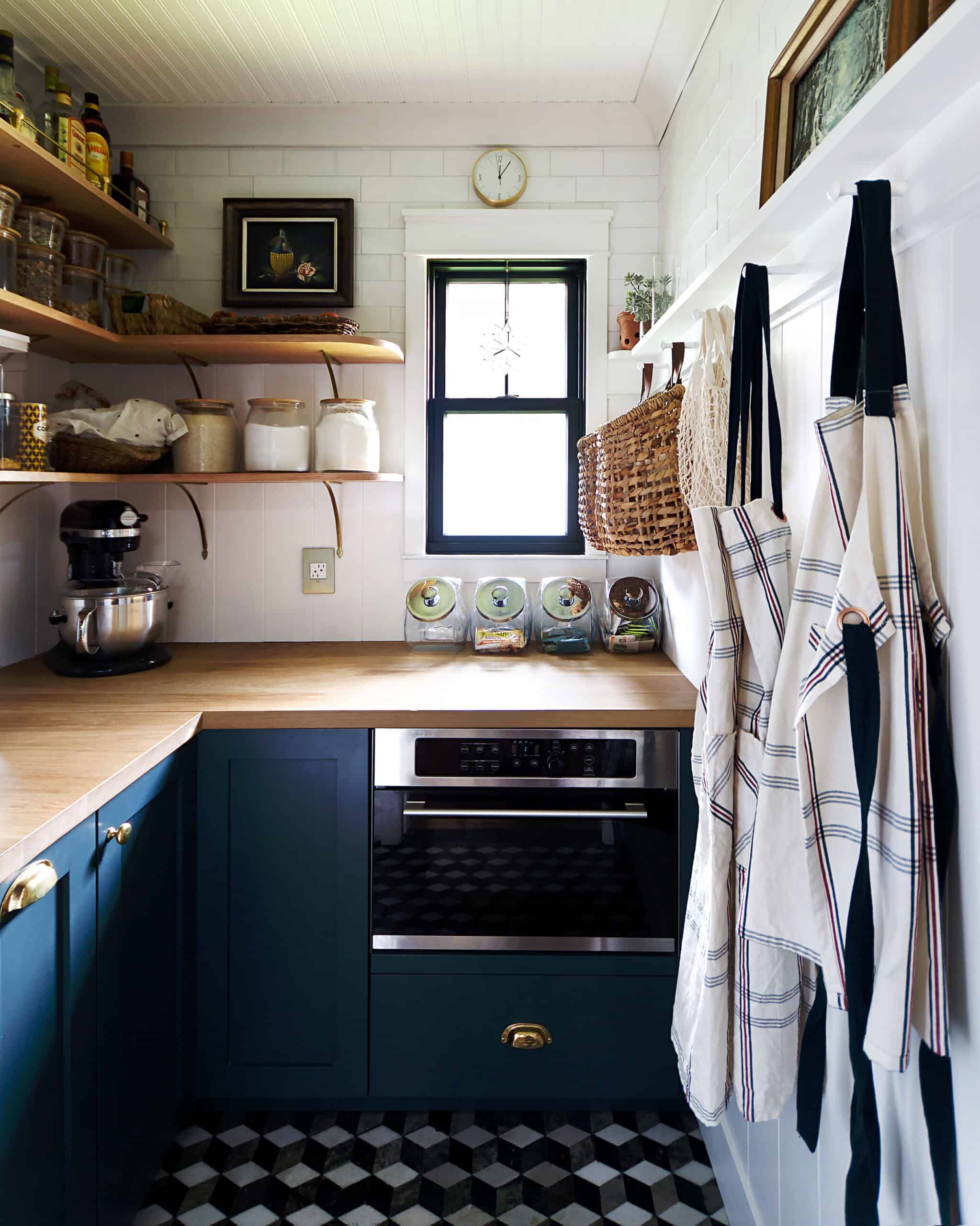 I also kept my romantic idea of how I wanted to use my kitchen at the forefront of my mind. I routinely imagined summer evening get-togethers with friends and family, being barefoot in long skirts with kids running around, sipping wine, string lights abound with Fleetwood Mac blaring, and my kitchen as the backdrop for all of this. I think mostly because that’s exactly how I grew up! But still, even local things were an influence. The pantry evokes Main Street Disneyland to me. Because, why not? I love Disneyland, and their store displays are the perfect sort of backdrop for a walk-in pantry.