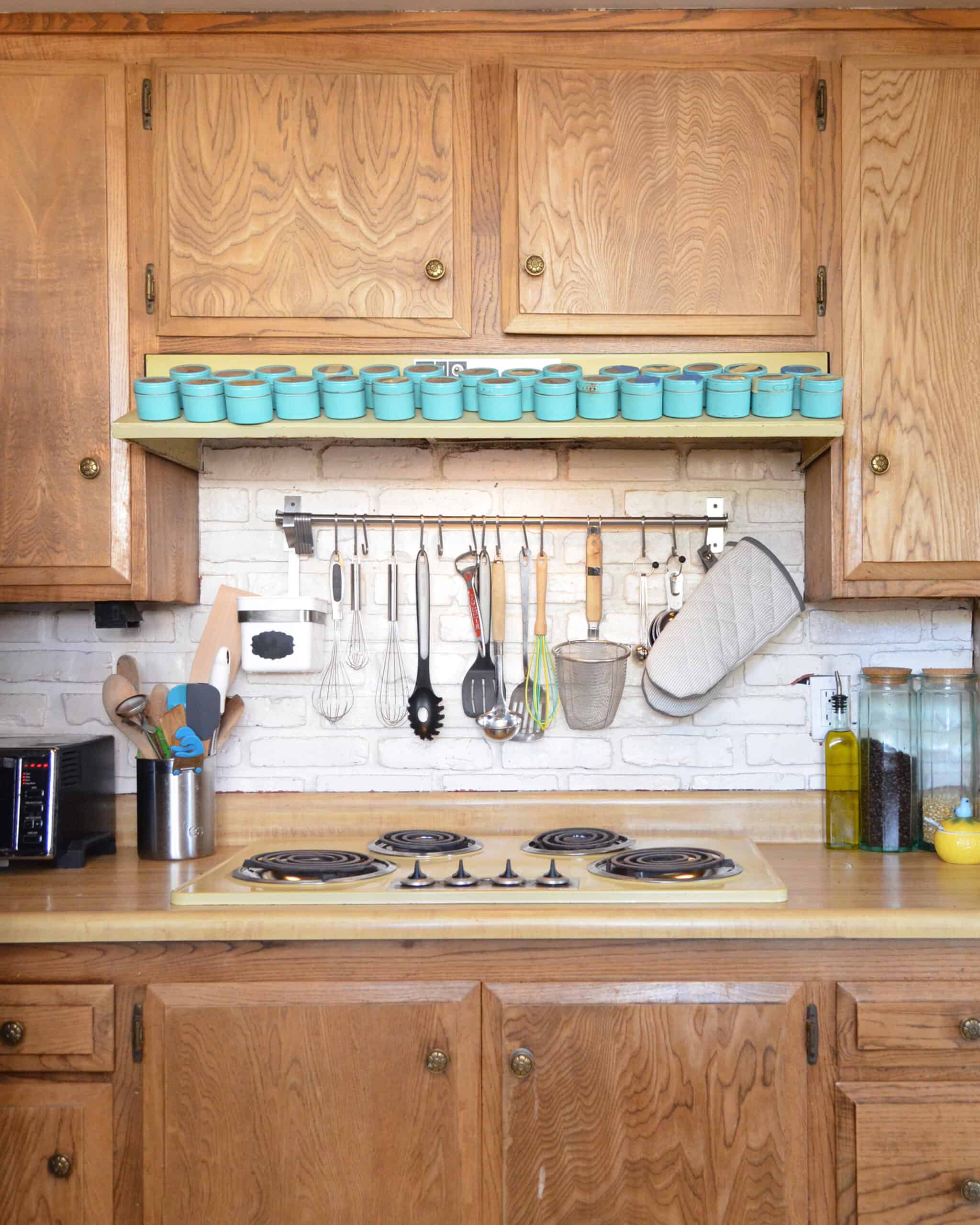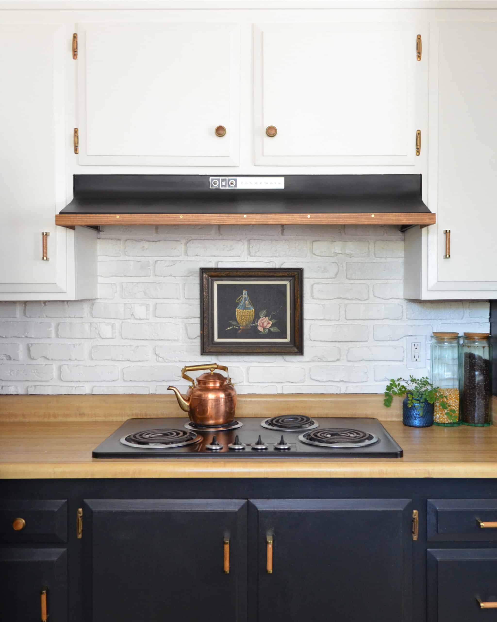 When we first moved in (Summer 2015), I didn’t want to spend an extra penny on anything that was “not permanent”. This was mostly because we had just come off of a couple of strict years of low-spending and high saving in order to get out of debt and save up our (very small) down payment. I look back now and see that reaction as a mix of naïveté, exhaustion, and not knowing where to start (I knew I wanted to change everything about the kitchen, so it was a bit overwhelming!). Hence, it took me a year and a half (Feb 2017) to get to the point where I had a vision and the energy to give the original kitchen a facelift.
