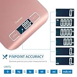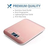 Quality design made of a combination of stainless steel and hard plastic for incredible durability Antifingerprint design will keep your scale from looking clean Easy to wipe and clean quickly Nonslip pads to hold your scale in place Slim nonbulky lightweight and portable design Large surface area to measure different types of items Additional information includes digital scale user manual 2 x aaa battery Dimensions 71 x 55 x 071 approxCapacity 0 5000 g 0 11 lbs Color rose gold Battery required 2 x aaa batteries batteries not included