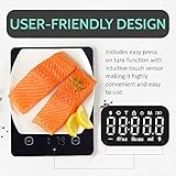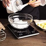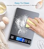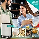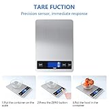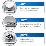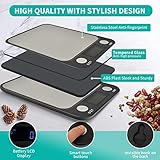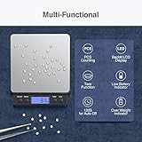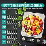 Amiloe - Practical design the food scale is designed with tempered glass for strong bearing and waterproof and sleek stainless steel surface for antifingerprint and easy to clean Large capacity high precision this digital food scale equipped with 4 builtin high precision load sensors it can quick and accurate 01oz1g increments measuring range is 01oz to 33lbs Tare function pressing the tare button to zero out the container weight before measuring making it easy to achieve accurate readouts of ingredients