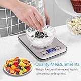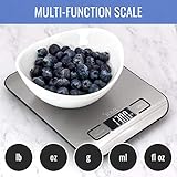 AQwzh - Accurate food scale weighs up to 11 lb 5kg graduation 0 04oz1g minimum weight recommendation 3g5g Multifunctional kitchen scale measures units between oz g ml and lb oz include water and milk volume measurement modes Stainlesssteel digital scale is designed with foodgrade 304 stainlesssteel platform for easy cleaning and maintenance Professional small profile with included 2 aaa batteriesincluded components 21 5v aaa batteries