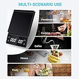 Multiscenario use the digital scales can not only be used to meet the needs of pour over but also can be used in various scenarios including cooking baking milk powder meal preparation and postage estimation Easy to use easy to read grams ounces and milliliters The tare button is used for tare calculation which makes it easy to read the ingredients accurately If there is no operation the scale will automatically turn off the power after 120 seconds