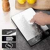 UCT - Lightweight sleek sturdy design designed with the compact dimension of 82 65 07 inches its easy to use and store save kitchen space and easy to carry out Designed with premium tempered glass for strong bearing sleek stainless steel surface for antifingerprint adds a modern aesthetic to your kitchen shiny face construction with nice touch button a musthave for your kitchen Waterproof and easy clean thus any spills can be dealt with easily without threat to the scale High precision kitchen scale with sleek stainless steel and white design the digital food weighing scale is made for contemporary kitchens The digital scales with builtin four highprecision load sensors offer quick and accurate 01oz1g increments when adding ingredients measuring range 01oz to 22 lbs 2g3g up to 10kg Ideal for using for measuring liquid and food cooking baking coffee tea pearls lipstick pills jewelry gold silver coins reloading etc