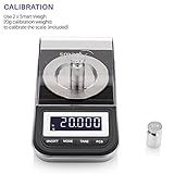 THINKSCALE - Tare calibration tare button on the reloading scale automatically subtracts the weight of the container making it easy to get a accurate net weight of powder or jewelry Included 50g calibration weight makes it easy to recalibrate your scale without buying extra weights Lcd screen indicator pocket scale has a backlit lcd screen which gives you a visible displaying in lightless enviroment A smart indicator could remind you low battery power overload and unstable position Autooff function works after 180 seconds of inactivity to save power