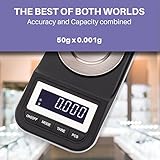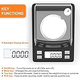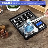 Accuratemilligram scale with readabilityresolution 002 grains 0001 grams 0005 carats Utilizes upgraded high precision sensor system and wind shelter Better protect your health and more accurate for your demand Upgradedmilligram scale come with 4 diffent size podwer pans stainless steel tweezer 2 sciencegrade measuring spoons for loading powders and bulk supplementsThe flip lid helps protect against damage as it rests in a pocket