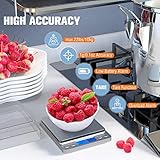 Meticulous accuracy equipped with high precision sensors to provide the most accurate weight readings Refined accuracy 001g 0001 oz up to a weight range of 500g 1764oz Superior quality materials the smart digital pocket scale is crafted to be strong accurate fast and userfriendly Constructed with a highquality stainless steel platform and abs plastic frame this digital kitchen scale is durable and easy to clean
