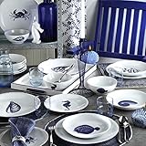 Marine Nautical 24 Pieces Porcelain Dinnerware Set, Made in Turkey, Service for 6, Fish Themed