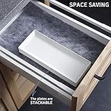 KooK Serving Trays, Rectangular Platters, Ceramic, White 11.8 in, Set of 4
