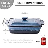 Long lasting color and scratch resistant high quality extremely hard and ecofriendly reactive glaze does not scratch and durable for everyday use ideal in the kitchen for making delicious meals and desserts Good size for daily use the koov rectangular baking dish for oven with lid measures approximately excludes the ears size and lip size 13l x 9w x 3h suitable for lasagna spaghetti chicken meat beef roasting vegetables storing and reheating leftovers and etc