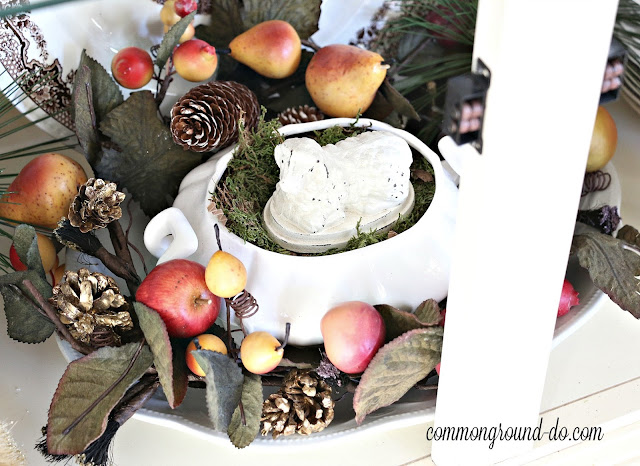 One more fun display spot for collections is my Cookbook Cupboard that is located in the Hearth Room. I found this old cupboard (minus the doors) when I needed something for booth displays many years ago. My husband spiffed it up a bit, but it's still a rough piece. Moving here, I had room to use it for display in here, close to the kitchen. It's a perfect little spot to decorate with a "kitchen-y" theme throughout the seasons.