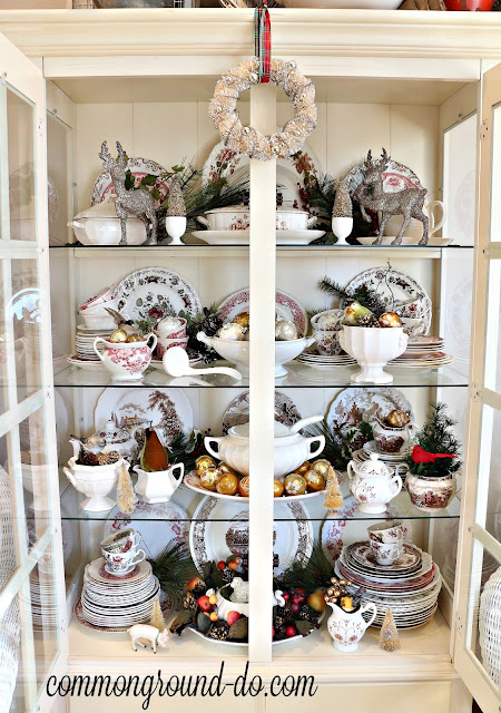 Here are a few more pics of my Kitchen China Cabinet at Christmas...