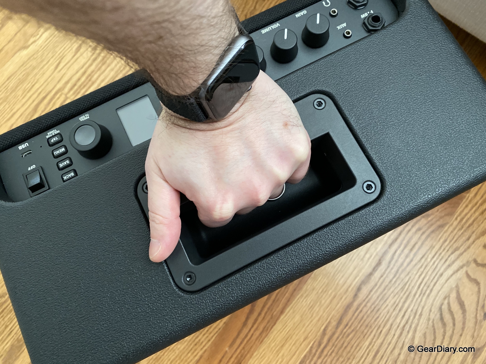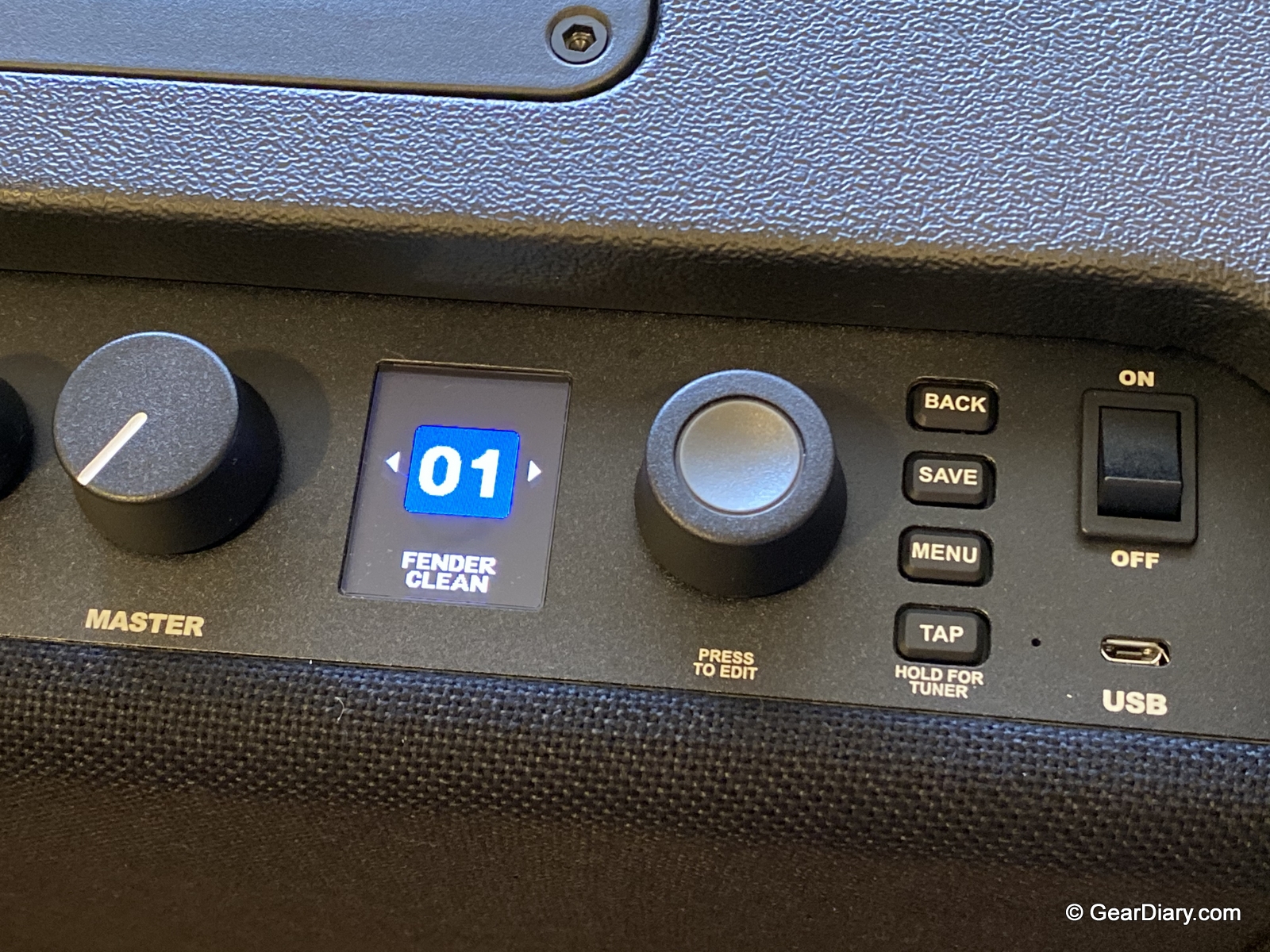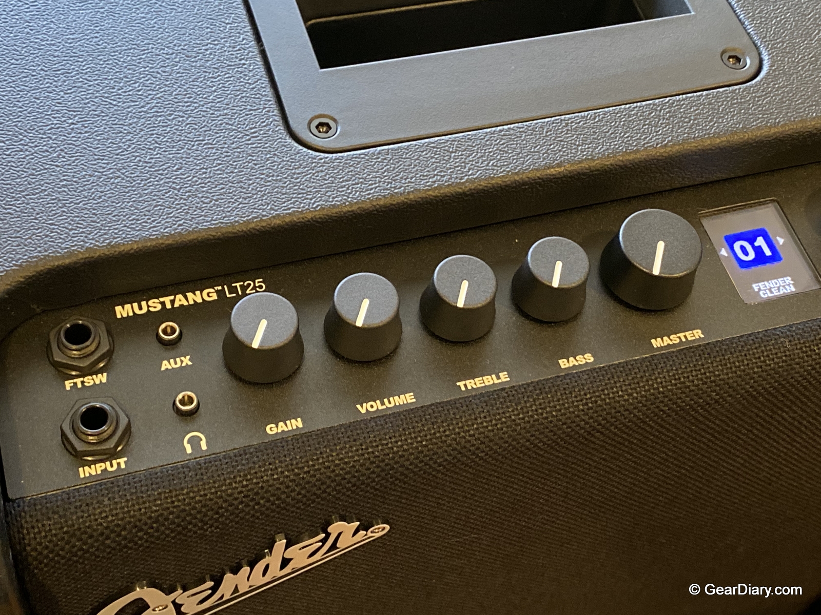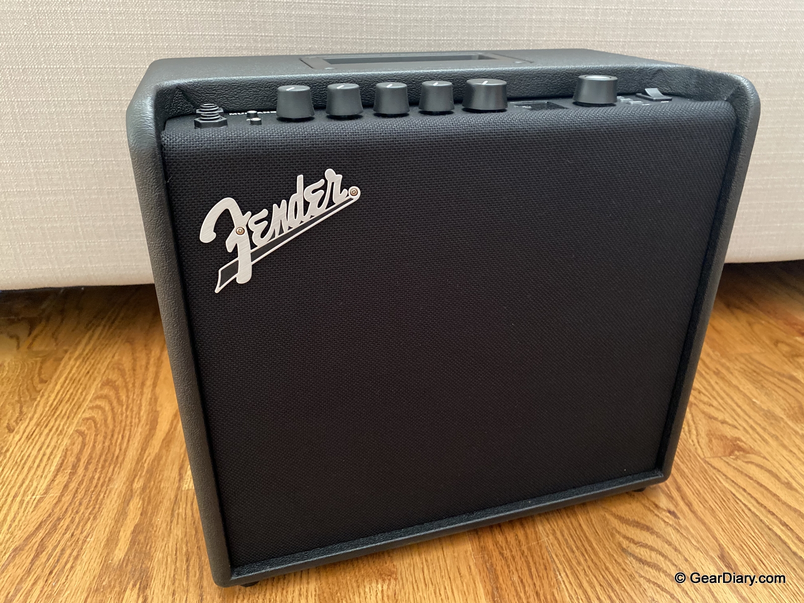 The Fullerton Ukulele is even better when plugged into Fender’s new Mustang LT25 amplifier. It’s a 25-watt amplifier with an 8” Fender special design speaker inside a wood cabinet that’s designed to be used by beginners and students, like me, for home practice. The LT25 has a built-in 1.8” color display that allows you to quickly switch between 30 preset electric guitar tones and you can edit them on the amp as well.