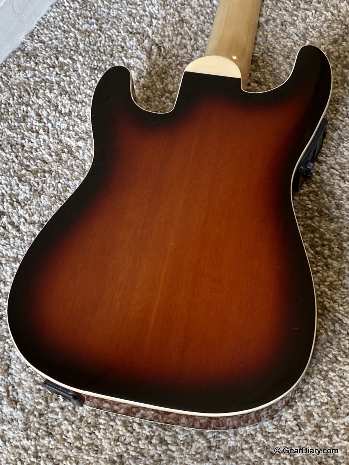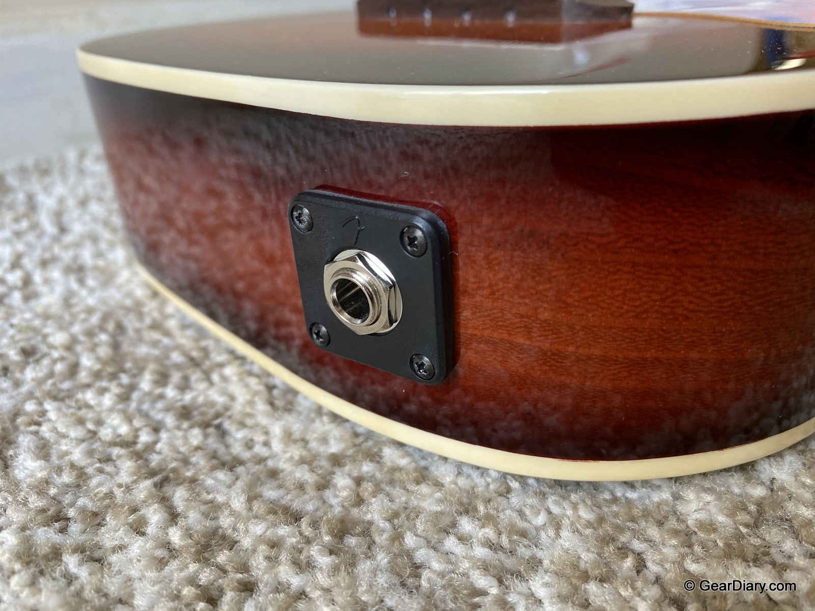 What I Like: Gorgeous, classic Fender-inspired design; Built-in pre-amp and tuner; Excellent lively sound; Tie-less strings.