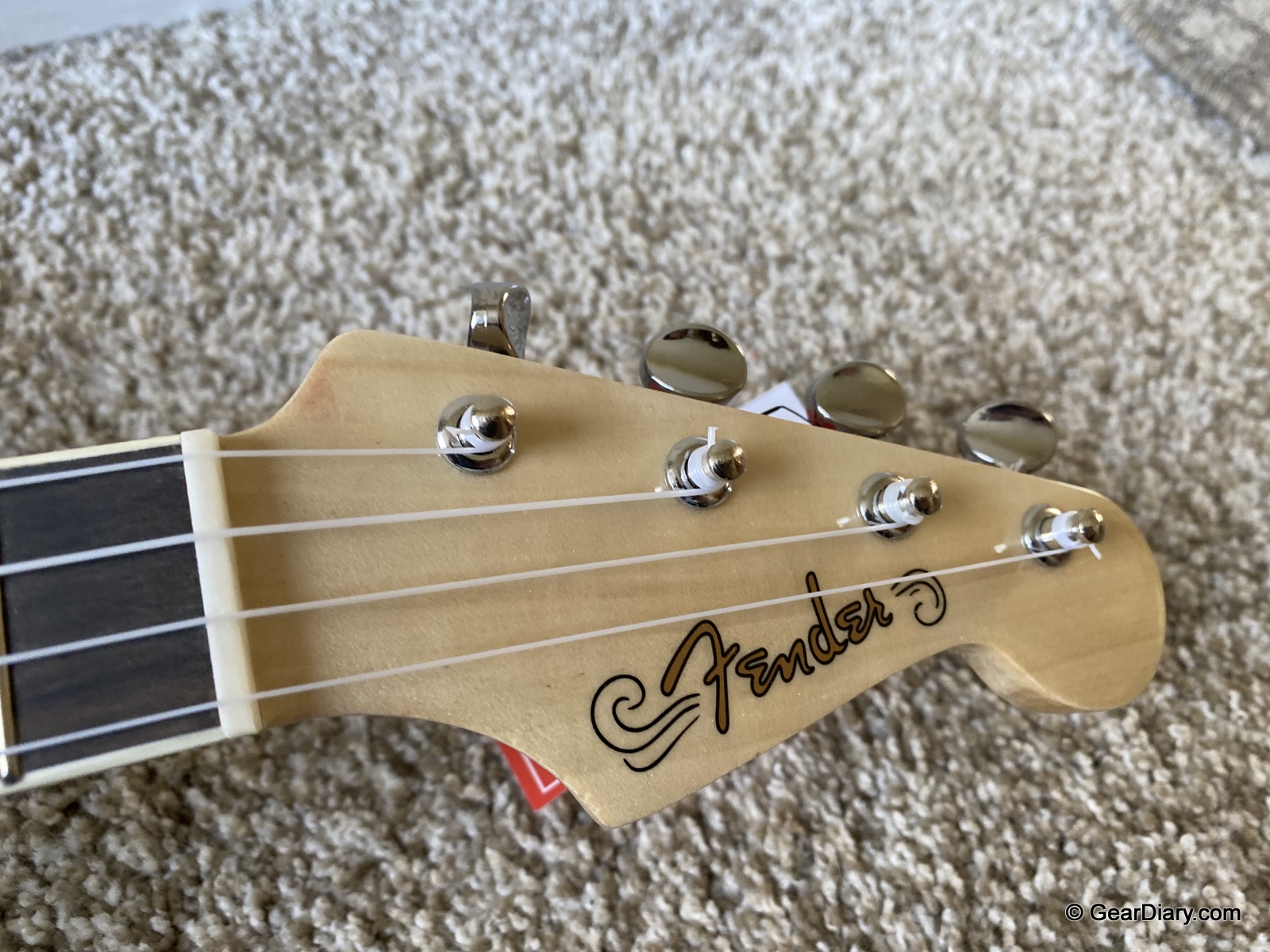 Fender’s new Fullerton Series Ukuleles come in three styles based on classic Fender guitars, each with their own beautifully-designed body paints and pickguards. The one I’ve been playing with is the Fullerton Strat Ukulele, which is styled after the classic Fender Stratocaster and is available in sunburst and black. The other models include the Fullerton Tele Ukulele styled after the Fender Telecaster, available in butterscotch blonde and black as well as the Fullerton Jazzmaster Ukulele, which comes in tidepool blue and Olympic white.