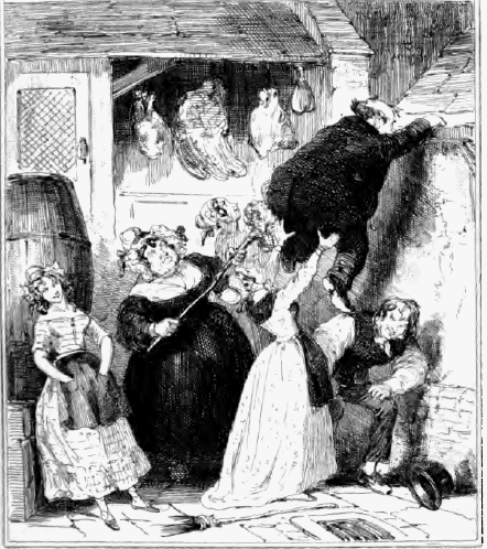 The procession reached the Guildhall at noon. There the town clerk, Mr. Ludlow, tried to make a speech praising the reform movement. But the crowded courtroom would not be placated, and the hissing drove poor Mr. Ludlow into retreat. From atop the bench Sir Charles (above) imperiously threatened to arrest anyone interfering with the court, and the catcalling became even louder. Eventually Sir Charles had to withdraw himself. Once he was gone, the crowd gave three cheers for the King.