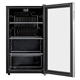 COMFEE’ - Led internal lights the beverage cooler features a recessed handle which makes it easy for you to open the door and gives the cooler a modern and sleek look The internal led light allows you to easily find your beverages at night Large capacity lowe three panel glass door with modern design the cooler is equipped with 3 adjustable and removable glass shelve which can hold 115 cans of beverages As for irregular shaped bottle it is easy for you to store it by removing shelves The front door is also equipped with a lowe three panel glass to prevent cool air leaking and uv to get inside the cooler to affect wines taste The door is equipped with a whole glass panel with no frame which looks delicate and modern Adjustable thermostat the adjustable thermostat allows you to adjust the temperature from 338 to 501 to 10 to store your favorite beverage in an optimum temperature Equipped with comfee advanced compressor technology the cooler can also maintain the internal temperature evenly and accurately in low noise which makes the beverage cooler works efficiently and energy saving