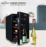 Koolatron - Uv protective door attractive mirrored glass door protects your wine from damage by harmful uv rays while soft interior lighting subtly highlights your wine collection Dual zone cooling separately controlled upper and lower temperature zones can each hold 6 bottles of wine at their ideal storage temperature Freestanding convenience place this attractive compact unit anywhere there is a power source so your favourite wines are always close at hand