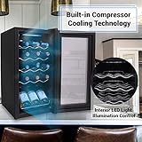 15 bottle capacity the wine coolers freestanding countertop wine fridge includes contoured polished chrome 4 wine racks 1 bottom standing rack to safely hold 15 bottles of wine for secure chilling storage Perfect gift idea for wine enthusiast Ultraquiet operation the counter wine refrigerator countertop table top wine cooler features a reinforced glass door w airtight seal and has an advanced cooling system that will keep your beverages at the right temperature without making a noise