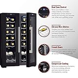COLZER - restore original underground wine cellar environment based on the temperature and humidity of the original wine cellar design our wine cooler design with wide temperature adjustable range 4172f and precise humidity auto control lets you customize an optimal environment for your wine of red white or rose for longterm aging or quickly serving Stable temperature setting will not jump randomly truly 32 bottle capacity with wider spacing this compact wine fridge can house up to 30 standardsize 750 ml wine bottles on its sturdy beech shelves with grooves Spacing between adjustable and removable shelves more than 35 no limitations to store bigger size one No shake no damage bottle when slide in or out