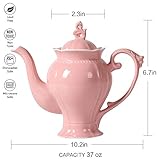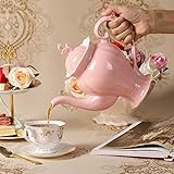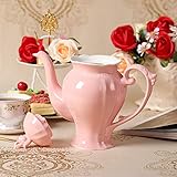 PULCHRITUDIE - Zero lead with 100 fda and cp65 qualified made with safe material Safety strong packing money back guarantee if you receive chip item Elegant english afternoon tea style easy match with various tea cups and coffee cups Durable fine china porcelain light weight light pink glazed Excellent size 37 ounces 90 capacity 34oz recommended five cups perfect to serve up to five people