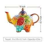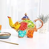 Mulitfunctionserves as a vessel for tea or other hot beverages or display this hand painted tea pot and brighten up a table counter or shelfIts cute and pretty get more compliments and surprises in your tea party Original design with copyright emblazoned with the distinctive dutted elephant shapesTeapot colors are lovely and vibrant which can give you a different visual experience this lucky elephant teapot is perfect for entertaininguse them every day for a dose of good luck with your cup of tea