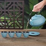 Better gift the aqua cast iron teapot is crafted with a retro green leaf pattern on its surface which is a symbol of natural simplicity and purity Beautiful packaging has also been designed An exquisite gift for dad mom friends family wedding décor decorations party and tea lovers Nice tea kettle for christmas gift