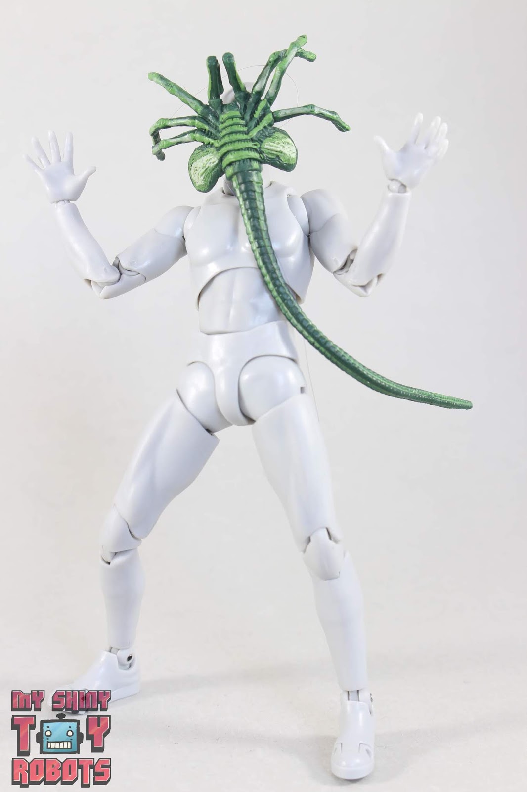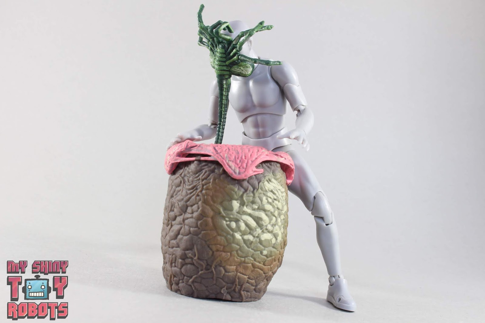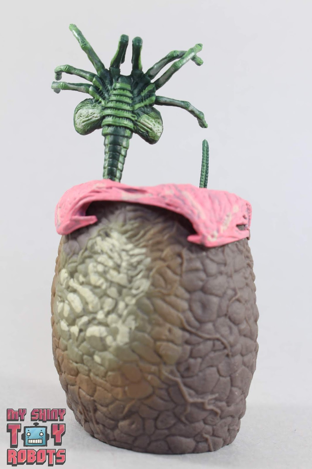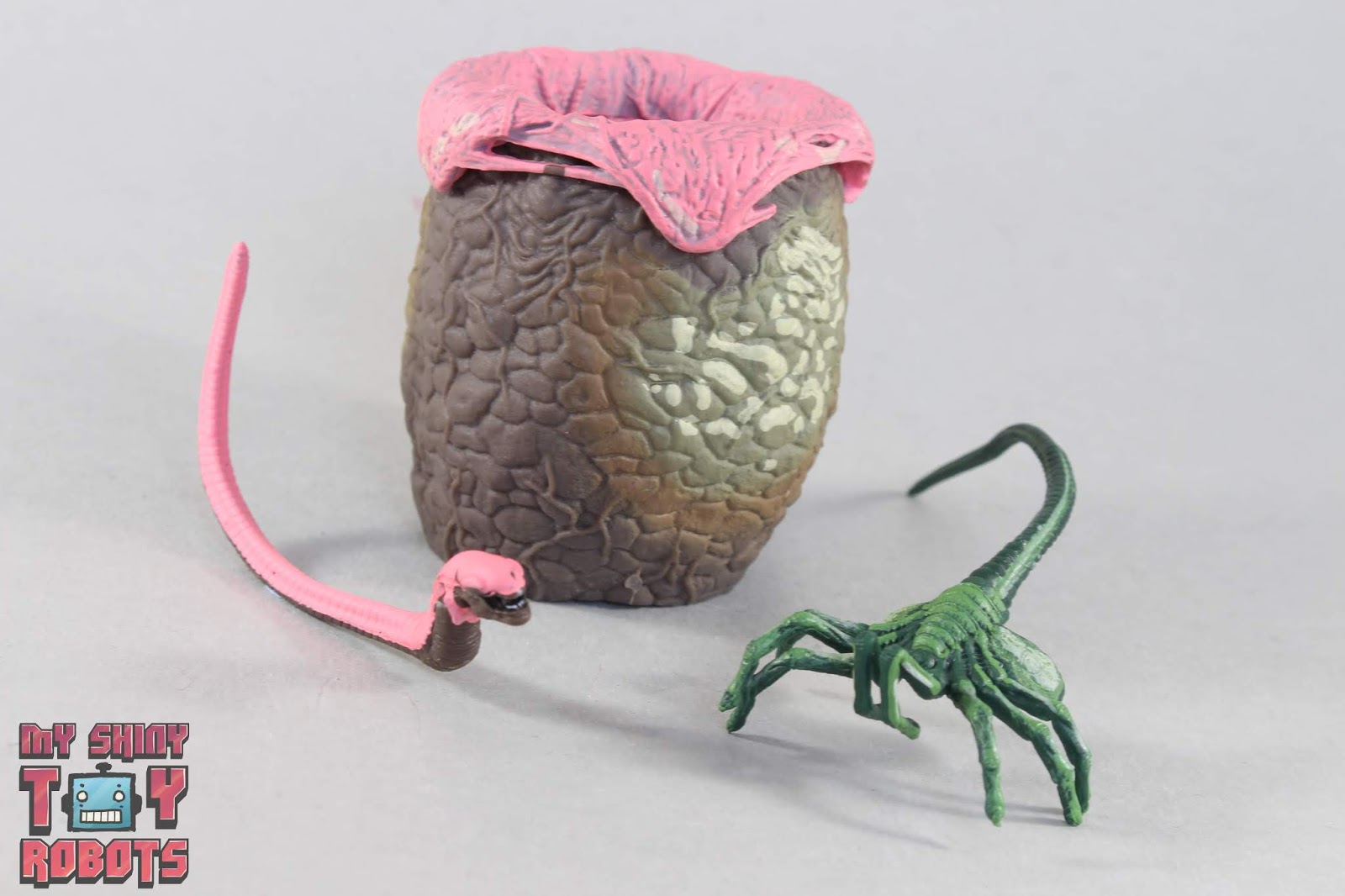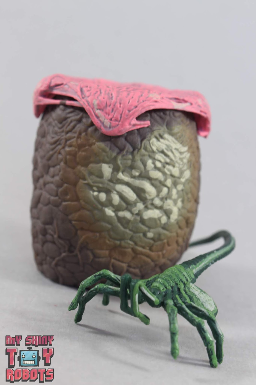 The Xenomorph Warrior doesn't come alone either! Also packaged with the figure are an alien egg, Facehugger and Chestburster - all refurbished from previous releases but given updated arcade appearance paint jobs. For the Chestburster this naturally means a pink colourscheme similar to that of the Xenomorph (with a bit more dark grey thrown in for good measure) but the Facehugger particularly stands out with its new green colours. As with the Xenomorph the 16-bit style shading has been beautifully done, using light and dark greens to bring out all that sculpted detail. The egg's colours on the other hand remain largely unchanged from the film version, though perhaps just a little more vibrant to gel better with all the other gaudy decos going on with this release. Both the Facehugger and Chestburster have bendable tails for very minimal poseability, and the egg itself is hollow on the inside so it's possible to display with the FaceHugger bursting out on an unsuspecting victim. These all feel like pretty essential accessories for any Alien release so seeing them included here isn't really much of a surprise, but to get a complete package decked out in video game colours really helps make the release feel particularly special.