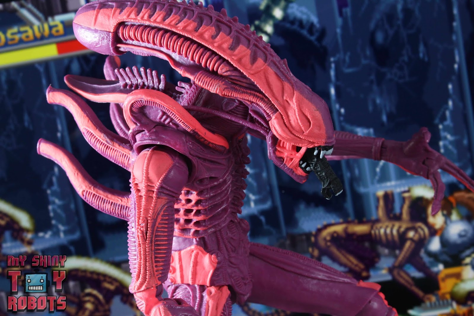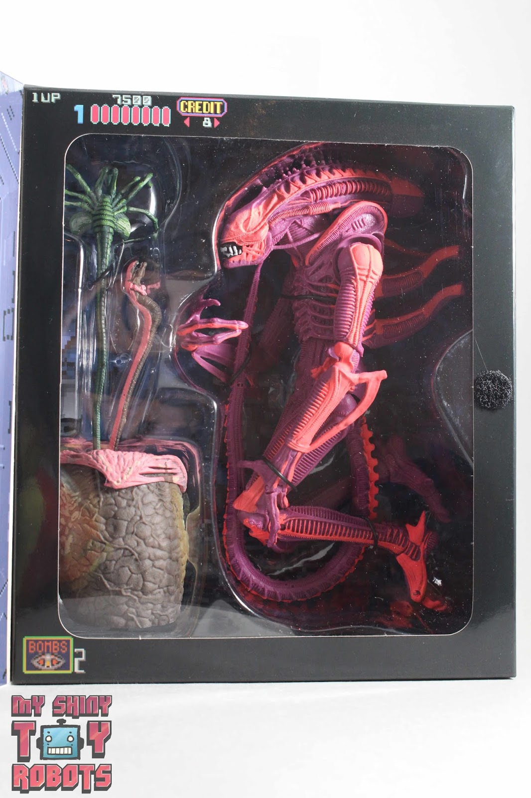 If there's one thing NECA know, it's how to do a good repaint. While the company has produced a range of high quality horror and sci-fi figures through their Ultimate line-up, another particularly popular faucet of their repertoire has been video game-themed figures based on characters' appearances in retro console or arcade games. These releases have included the likes of Godzilla, Batman, the Teenage Mutant Ninja Turtles and Freddy Kruger, but the Aliens franchise has proven particularly lucrative. Whether its through their own games or the Alien vs Predator crossover, people can't get enough of Xenomorphs and honestly who can blame them. The Xenomorph Warrior (Arcade Appearance) figure is based on the classic 1990 side-scrolling arcade game from Konami, in which the player could choose from either Ellen Ripley or Corporal Hicks. Here the Xenomorphs took on bright neon colour schemes, with the warriors looking particularly garish in their pink and purple cel-shaded glory.