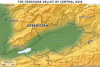 See, tulips evolved from lilies where Europe blends into Asia, in the Ferghana Basin, north of Afghanistan, east of the Caspian Sea and west of Lake Balkhash - what is today Uzbekistan. The basin is surrounded by mountains, and in this isolated test tube 36 different varieties of wild tulips developed over a few thousand years.